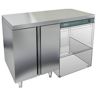 Стол закрытый HICOLD НБМСЗКП-12/7П предназначен для комплектации барных стоек, оборудован крылом под посудомоечную машину, распашными дверьми и полкой.