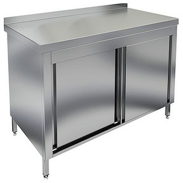 Стол закрытый с дверцами-купе с бортом HICOLD НСЗК-12/7Б оснащен 2 полками, служит для разделки и обработки продуктов, а также для хранения кухонной посуды и сухих продуктов. Оборудование из нержавеющей стали AISI 430 не впитывает пищевые кислоты, химические добавки и запахи. Стол легко подвергается санитарной обработке любыми дезинфицирующими средствами.