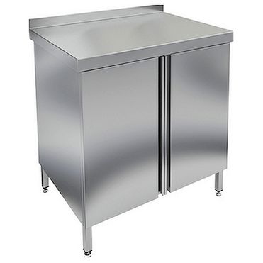 Стол закрытый с распашными дверцами с бортом HICOLD НСЗ-9/6Б оснащен 2 полками, служит для разделки и обработки продуктов, а также для хранения кухонной посуды и сухих продуктов. Оборудование из нержавеющей стали AISI 430 не впитывает пищевые кислоты, химические добавки и запахи. Стол легко подвергается санитарной обработке любыми дезинфицирующими средствами.