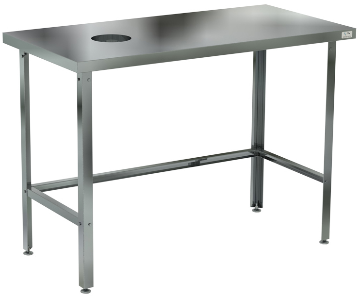 Стол КОБОР СРО-100/60 для сбора пищевых отходов, широко применяется в различных разделочных цехах и предприятий общественного питания, комбинатах пищевой промышленности для разделывания и обработки пищевых продуктов, а также в качестве вспомогательной поверхности для посудомоечных отделений для сбора мусора и остатков.