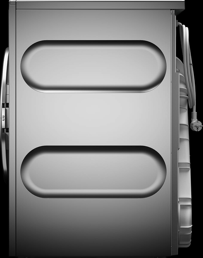Техника имеет стильный титановый цвет с черной панелью управления, что делает ее современной и стильной. Мотор инверторного типа обеспечивает тихую и эффективную работу, а барабан из нержавеющей стали Soft Drum™ с реверсивным вращением гарантирует равномерное сушение и уход за вашим бельем.