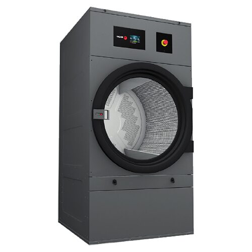 Дверь с большим проемом. Система против сминания. Корпус и фронтальная панель из окрашенной стали. Барабан из нержавеющей стали со штампованной перфорацией для обеспечения бережной обработки тканей. Реверс барабана. Смешанный поток воздуха (осевой и радиальный). Кнопка аварийной остановки. Фильтр улавливания ворса в нижней части. Двигатель с частотным преобразователем.