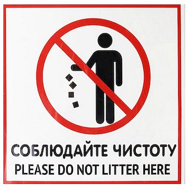 Табличка "Не мусорить" выполнена методом прямой полноцветной печати на пластике.