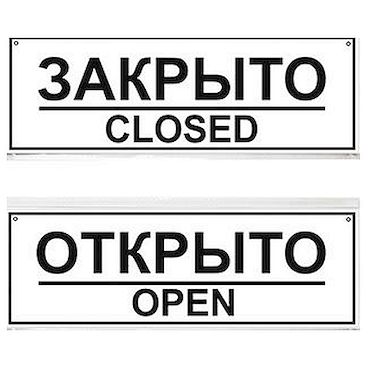 Табличка двусторонняя "Открыто/закрыто" выполнена методом прямой полноцветной печати на пластике.