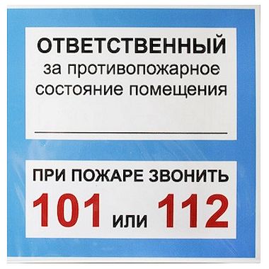 Табличка "Ответственный за противопожарное состояние помещения" 200*200*1 мм. пластик. /1/10/40/