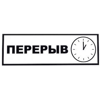 Табличка "Перерыв" выполнена методом прямой полноцветной печати на пластике.