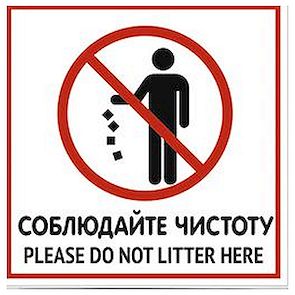 Табличка "Соблюдайте чистоту" выполнена методом прямой полноцветной печати на пластике.