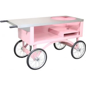 Тележка для аппарата сахарной ваты RoboLabs ТАСВ-130К1 четырехколесная имеет розовый крашенный корпус и нерж. столешницу.