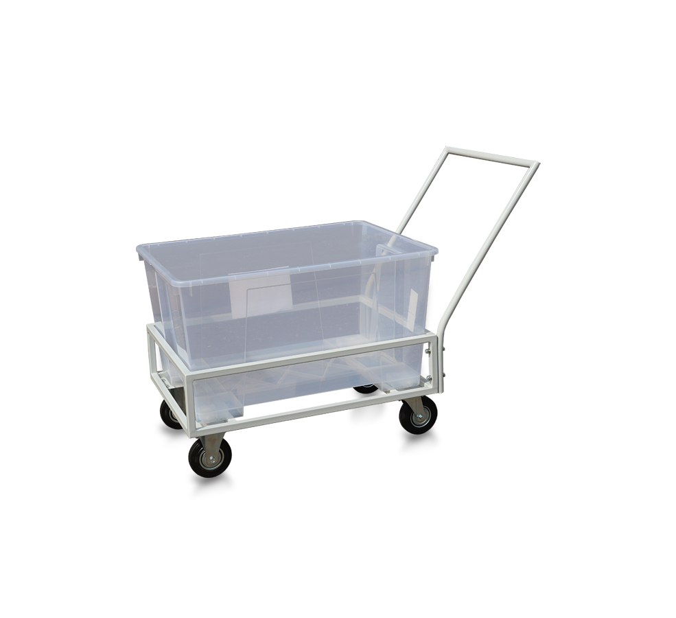 Тележка оснащена удобной ручкой и поворотными колесами для комфортной и быстрой доставки к месту сбора, распределения, стирки или хранения.
