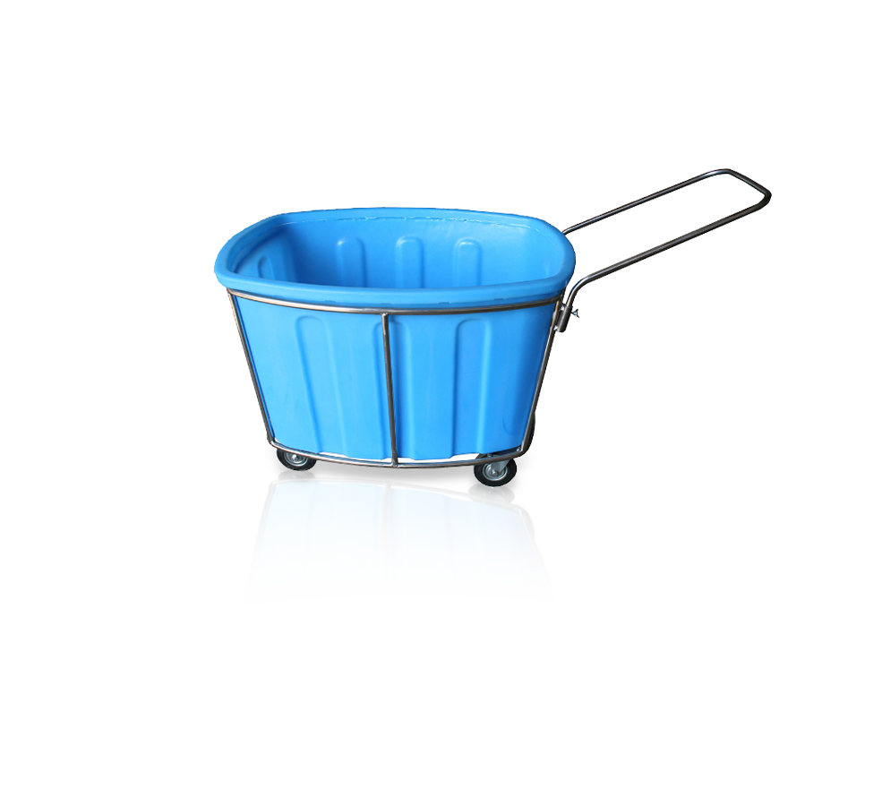 Тележка оснащена удобной ручкой и поворотными колесами для комфортной и быстрой доставки к месту сбора, распределения, стирки или хранения.