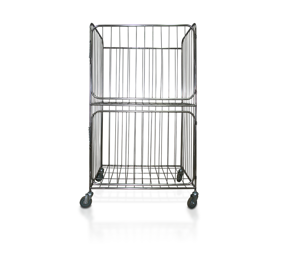 Конструкция оснащена поворотными колесами для комфортной доставки к месту сбора, распределения, стирки или хранения.