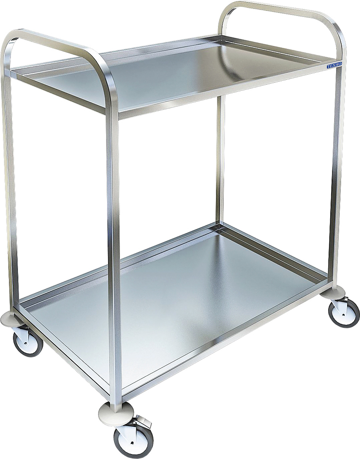 Тележка сервировочная Техно-ТТ ТП-220 предназначена для доставки готовых блюд, сбора тарелок, чашек и стаканов со столов на предприятиях общественного питания и торговли. Модель оснащена 2 полками и 4 колесами, 2 из которых с тормозными устройствами. Разборный каркас выполнен из квадратной трубы 20х20 мм из нержавеющей стали AISI 304, полки - из нержавеющей стали AISI 304.