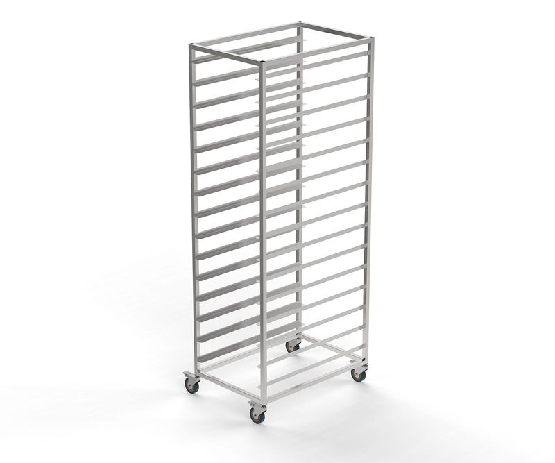 450х650х1600мм, Тележка-шпилька для противня 400х600, 15 уровней, каркасразборный нерж труба 20х20мм, передвижная, колеса d=75 мм
