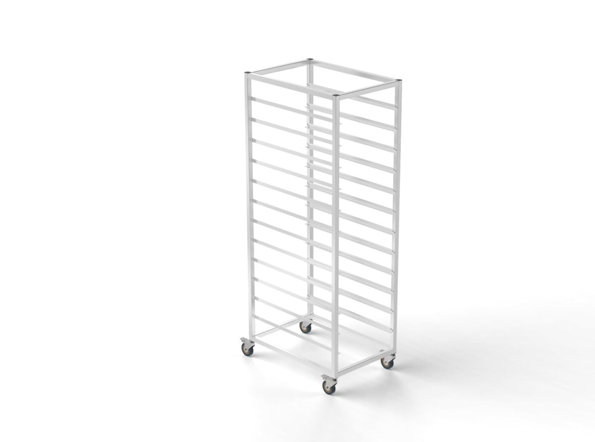 Тележка имеет сварную конструкцию с каркасом из нержавеющей трубы (сталь AISI 430) 25 × 25 мм, установленным на поворотные колёса диаметров 75 мм. Направляющие под противни размером 400 × 600 мм изготовлены из нержавеющей листовой стали марки AISI 430 толщиной 1,5 мм. В зависимости от исполнения, тележка имеет 15 уровней направляющих.