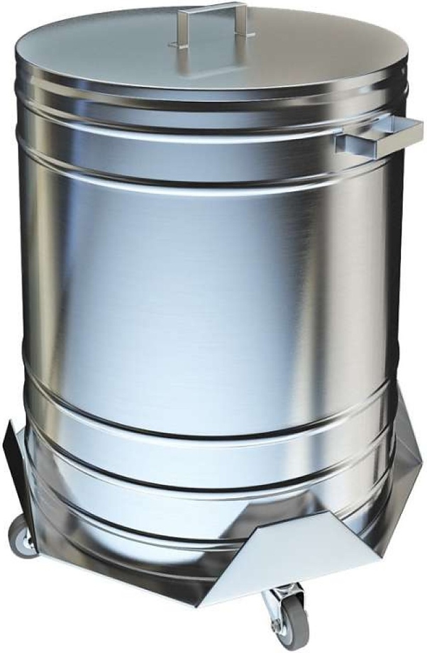 Платформа на 4-х колесах из AISI 430 мм, бак из нержавеющей стали AISI 304. Тележка для отходов – удобное приспособление, предназначенное для накопления и последующей транспортировки остатков еды по территории заведения общепита. Изделие представляет собой аккуратный цилиндр, имеющий диаметр 410 мм. Бак изготовлен из легированной стали марки AISI 304, предназначенной для пищевых продуктов. Тубус установлен на небольшую восьмиугольную платформу. К ее нижней поверхности прикреплены 4-ре колесика, позволяющие свободно перемещать объект в пределах ресторана, кафе или столовой. Сверху контейнер прикрыт не зафиксированной на нем крышкой.
