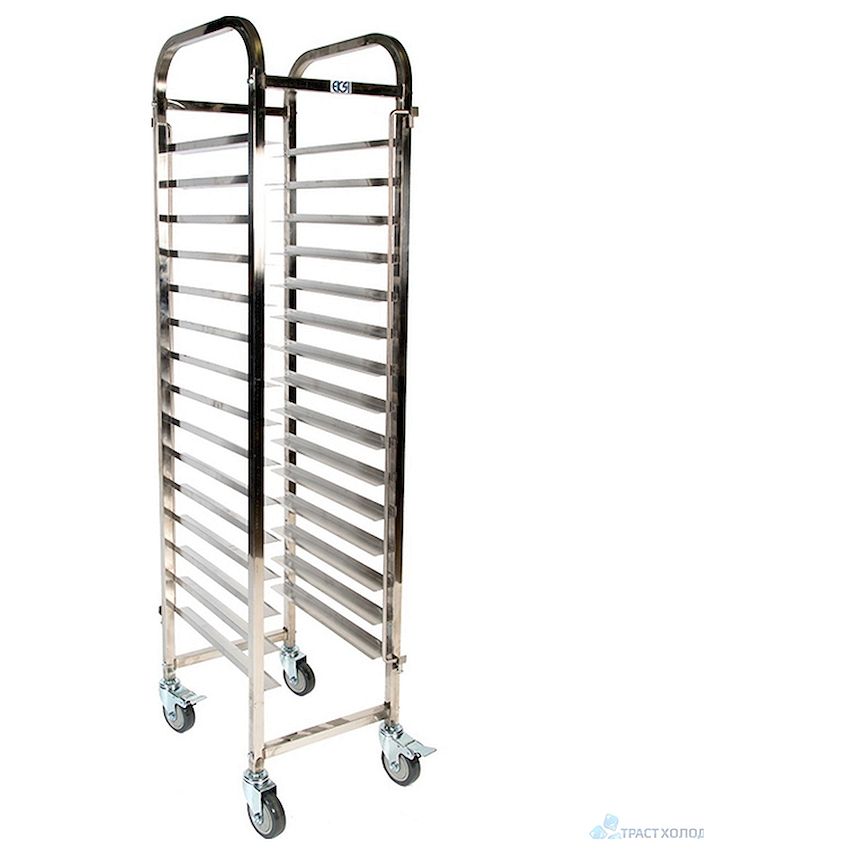 Тележка-шпилька EKSI PJ15 используется в кондитерских цехах и пекарнях для транспортировки и краткосрочного хранения полуфабрикатов и готовой продукции на противнях.