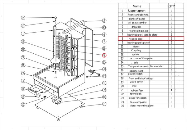 ТЭН #8 для гриль-шаурма т.м. EKSI серии HES, мод. HES-E2