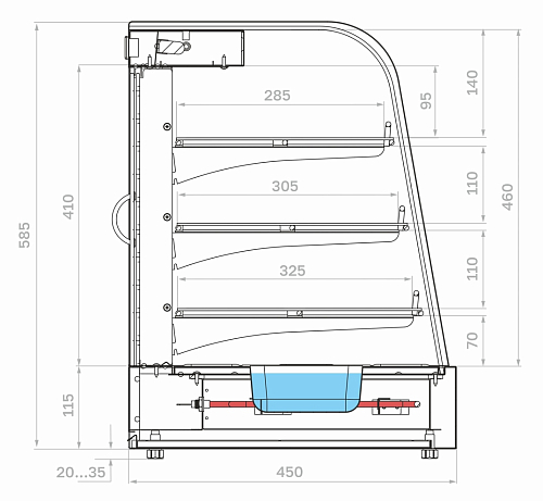 Для обслуживания и удобства чистки в витрине предусмотрен выдвижной поддон для сбора крошек.