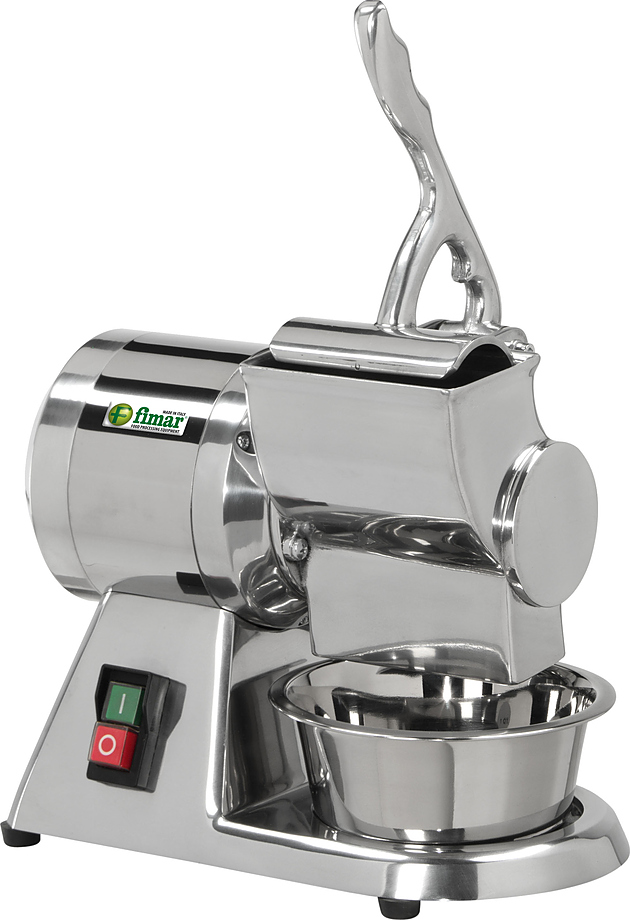 Терка для твердых сортов сыра FIMAR GR 8/D используется на предприятиях общественного питания и торговли для натирания сыра (твердые сорта), хлеба и сухофруктов. Модель оснащена микровыключателем на прижимном рычаге, нижней защитной решеткой и тормозом двигателя. Корпус и входное отверстие выполнены из полированного алюминия, ролик - из нержавеющей стали.