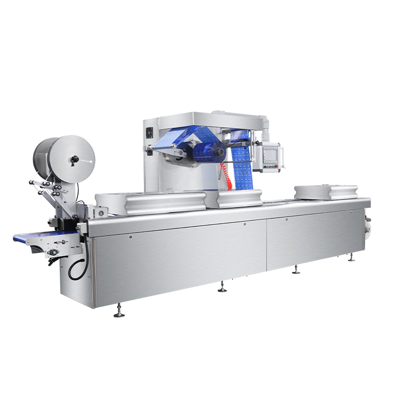 Термоформовочная машина Hualian Machinery HVR-420A (220*76.8*50 мм; 300*76.8*50 мм; вод.охл., газ., этикетировщик) применяется для автоматического формования и запайки лотков. Машина выполняет автоматический цикл формования лотков из мягких типов плёнки, с последующим вакуумированием и газонаполнением лотка. По завершении цикла выполняется его запайка, маркировка (опционально) и обрезка краёв плёнки. Конструкция машины разработана специально с учётом автоматизации и повышения эффективности производства, удобная настройка параметров, минимальные затраты времени на смену формовочных матриц, а также наличие узла намотки остатков плёнки.