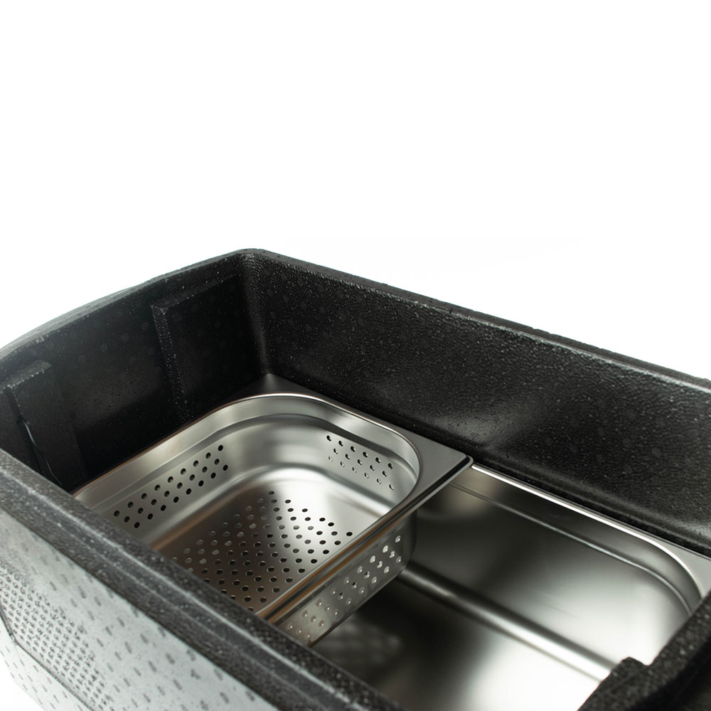 Термоизоляция обеспечивается за счет выполненных стенок контейнера из усиленного вспененного полипропилена и плотно прилегающей термоизолированной крышки. Для продления срока хранения рекомендуется применять хладоэлементы или термоэлементы.. Для переноски некоторые контейнеры оснащены ремнями.
