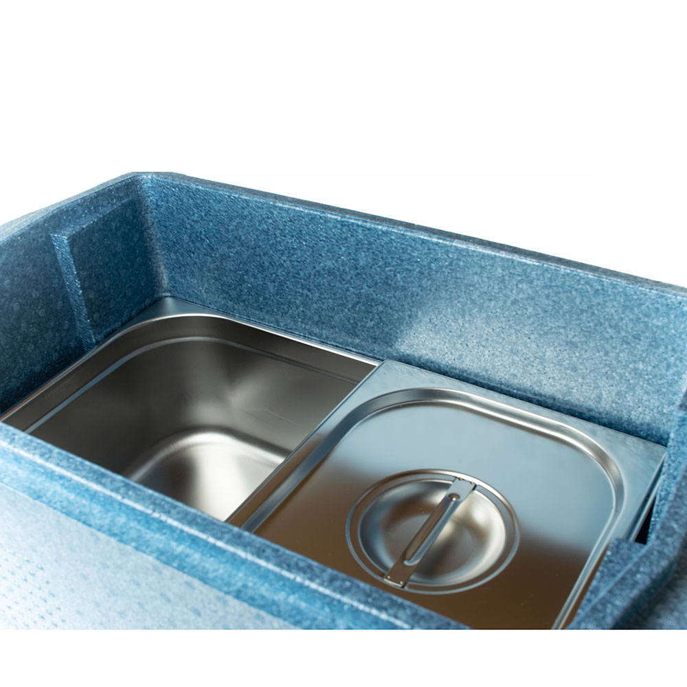 Термоизоляция обеспечивается за счет выполненных стенок контейнера из усиленного вспененного полипропилена и плотно прилегающей термоизолированной крышки. Для продления срока хранения рекомендуется применять хладоэлементы или термоэлементы. Дополнительно контейнеры оснащены датчиками температуры.