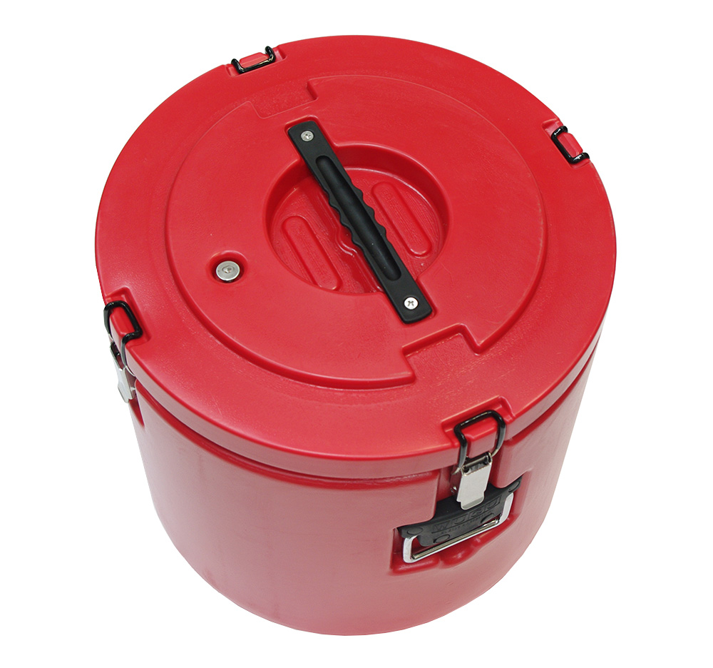 • Термоконтейнер цилиндрический с верхней загрузкой объемом 30 л из цельнолитой двухслойной конструкции из пищевого полиэтилена толщиной 3 мм с инжекцией пенополиуретана высокой плотности.