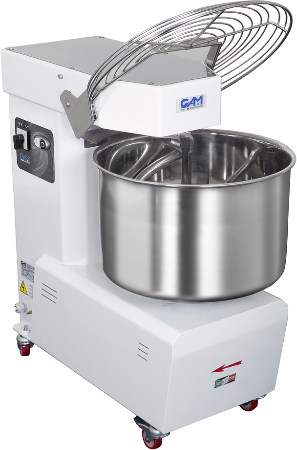 Тестомес спиральный GAM Sofia TS 50-2S используется на предприятиях общественного питания, в кондитерских, пекарнях, супер- и гипермаркетах с собственной кухней для замешивания для замеса нежидкого дрожжевого и бездрожжевого теста. Модель оснащена регулируемыми по высоте ножками. Корпус выполнен из нержавеющей стали, окрашенной в белый цвет, спираль, емкость и тесторазбивочная лопатка - из нержавеющей стали AISI 304.