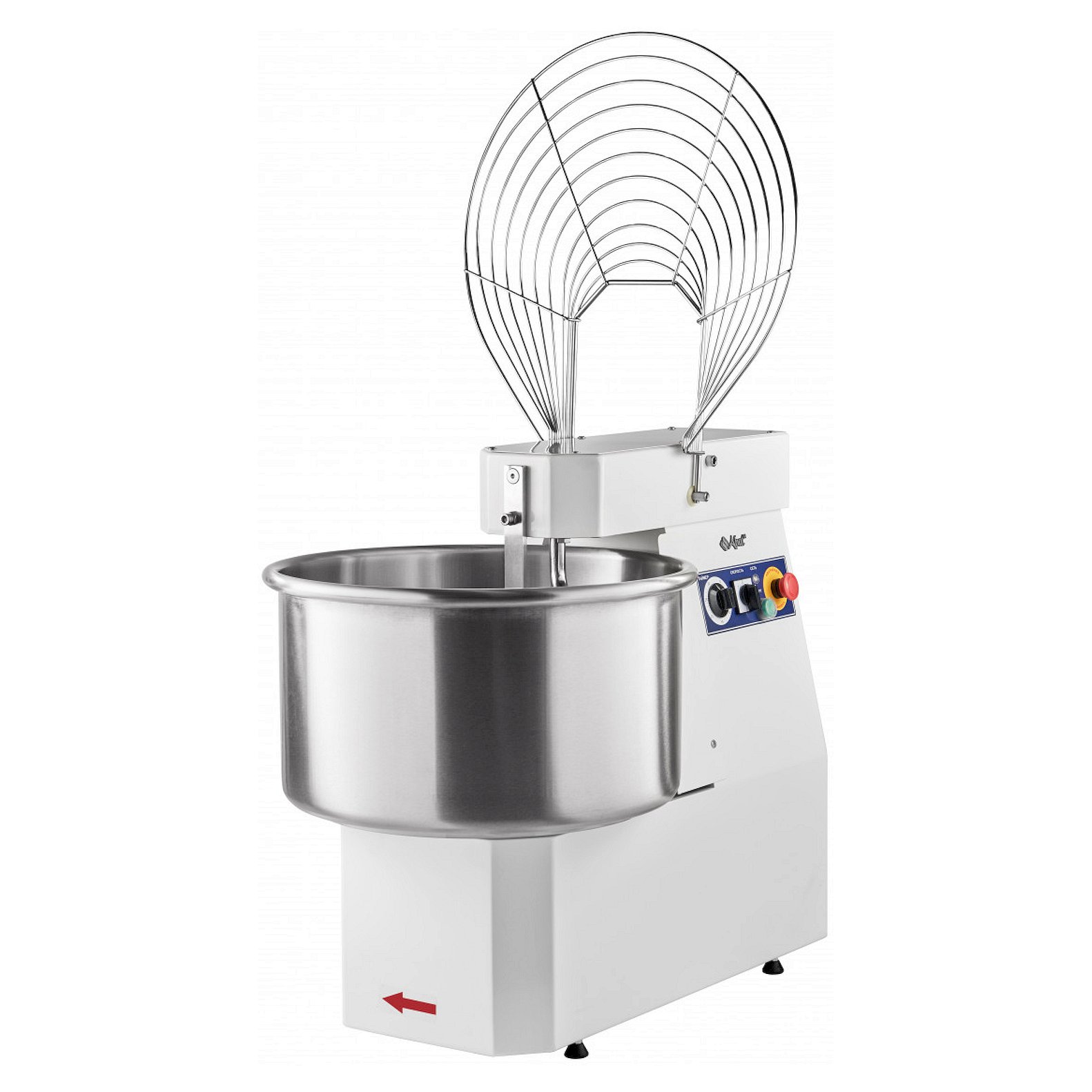 Компактный и легкий мотор-редуктор управляемый электромеханической панелью. Корпус изготовлен из прочной стали с полимерным напылением повышает стойкость к химическому и физическому воздействию, металлические комплектующие, которые имеют непосредственный контакт с продуктом, а именно нож, дежа, спираль реализованы из высококачественной нержавеющей стали марки AISI 304. Скругленные внутренние углы дежи облегчают гигиеническую уборку машины. В короткие промежутки времени оборудование способно выдавать большой объём готового продукта. Регулируемые по высоте ножки позволят сгладить неровности поверхности.