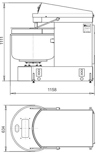 Модель с полуавтоматической системой управления оснащена прямым или реверсивным вращением дежи. Конструкция и элементы, контактирующие с тестом, выполнены из нержавеющей стали. Тестомес имеет прочную конструкцию и надежные внутренние компоненты, что обуславливает весьма длительный срок работы.