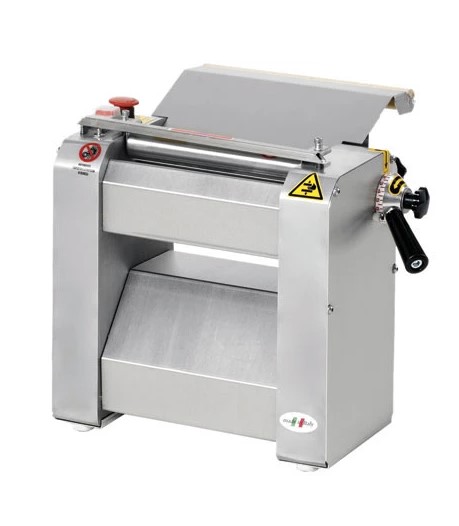 Модель оснащена механической системой управления,регулировкой толщины теста, 2 рядами валков, отсеками загрузки и выгрузки с наклонным поддоном.