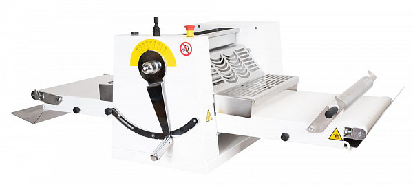 Тестораскаточная машина PANERO PMB 500-1000 НАСТОЛЬНАЯ используется для раскатки слоеного, песочного и крутого теста в пекарнях и кондитерских и мучных цехах, на предприятиях общественного питания и торговли. Корпус выполнен из окрашенной стали, защитные решетки и столики для теста- из нержавеющей стали.