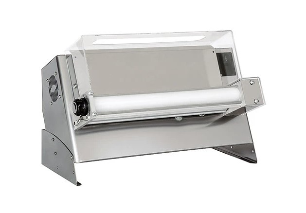 Тестораскатывающая машина Gemlux GDMA 310/1 предназначена для раскатывания тестовых заготовок в пласт при производстве пиццы, хлеба, пирожков и т.п. Оборудование оснащено одной парой раскатывающих валков, которые приводятся во вращение кнопкой включения, расположенной на корпусе. Масса тестовой заготовки составляет 80-210 г, ширина пласта – 14-30 см, толщина раскатки регулируется в пределах от 0 до 4 мм. Важное преимущество оборудования заключается в том, что при раскатке оно не нагревает тесто и не меняет его характеристики.
