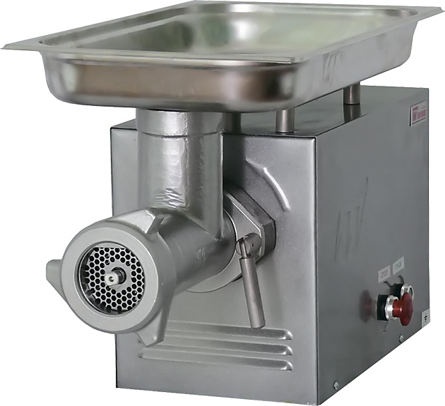 Установлен мощный электродвигатель и надёжный зубчатый цилиндрический редуктор, позволяющий перерабатывать даже сильно жилованное мясо.