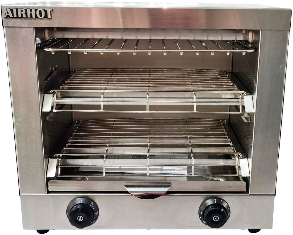 Тостер AIRHOT HST-270 применяется для обжаривания стейков и сосисок, приготовления сэндвичей, полуфабрикатов, подогрева булочек, гамбургеров, хот-догов и поддержания готовых блюд в разогретом состоянии на предприятиях общественного питания и торговли. 2 переключателя для регулировки температурного режима, съемная задняя панель для облегчения очистки и съемный поддон для сбора жира и крошек. Корпус выполнен из нержавеющей стали.