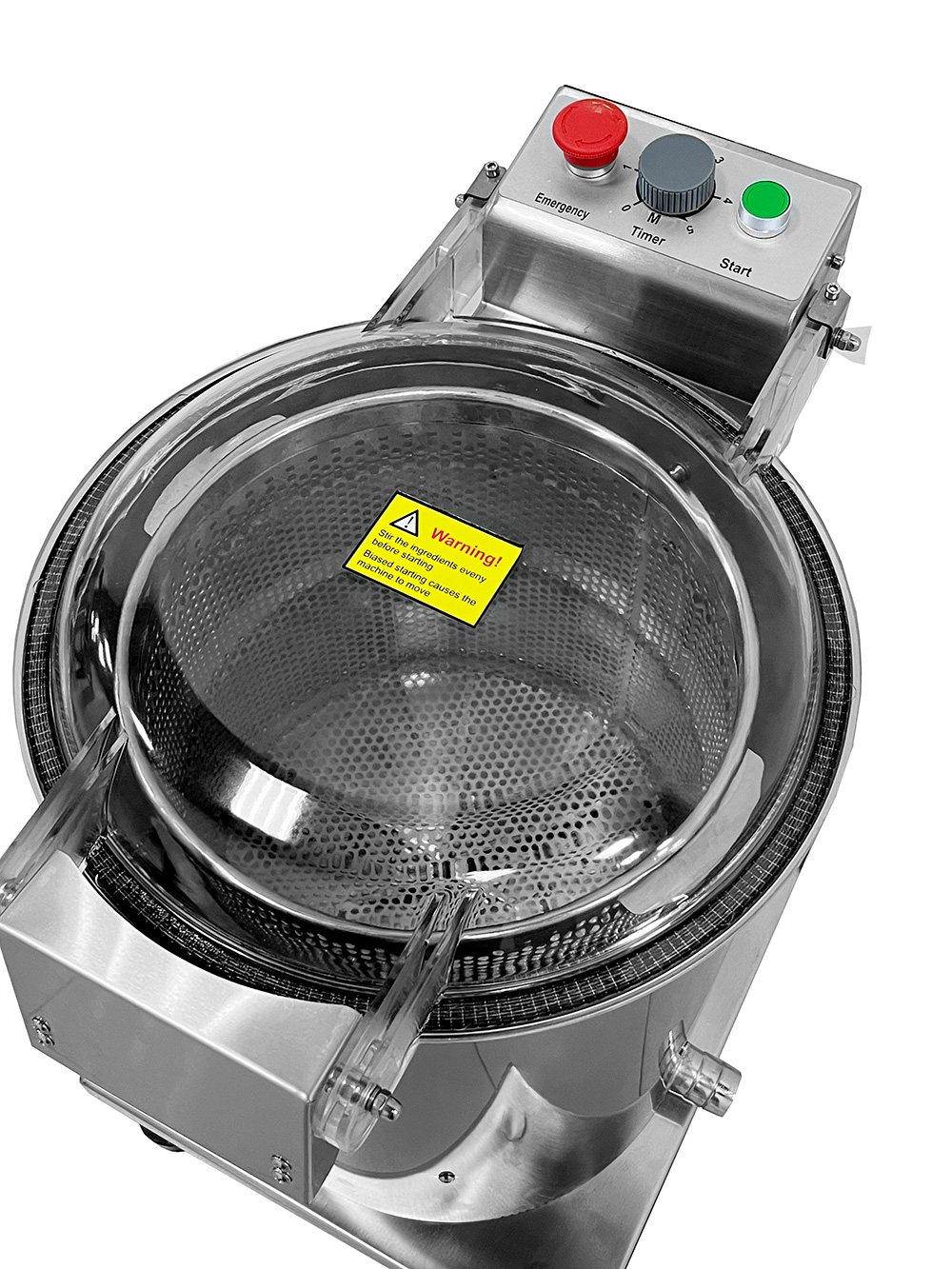 • Механическая панель управления: кнопка включения, таймер до 5 мин, кнопка аварийной остановки.