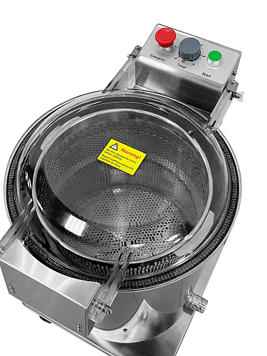 Центрифуга Kocateq WF 20E для сушки салата электрическая, объемом 20 л используется на предприятиях общественного питания и торговли для сушки и удаления воды из зелени, шпината, салатов и других листовых овощей. Модель оснащена электрическим приводом, механической панелью управления и трубкой для отвода воды. Корпус и корзина выполнены из нержавеющей стали, трубка - из силикона, ножки - из резины.
