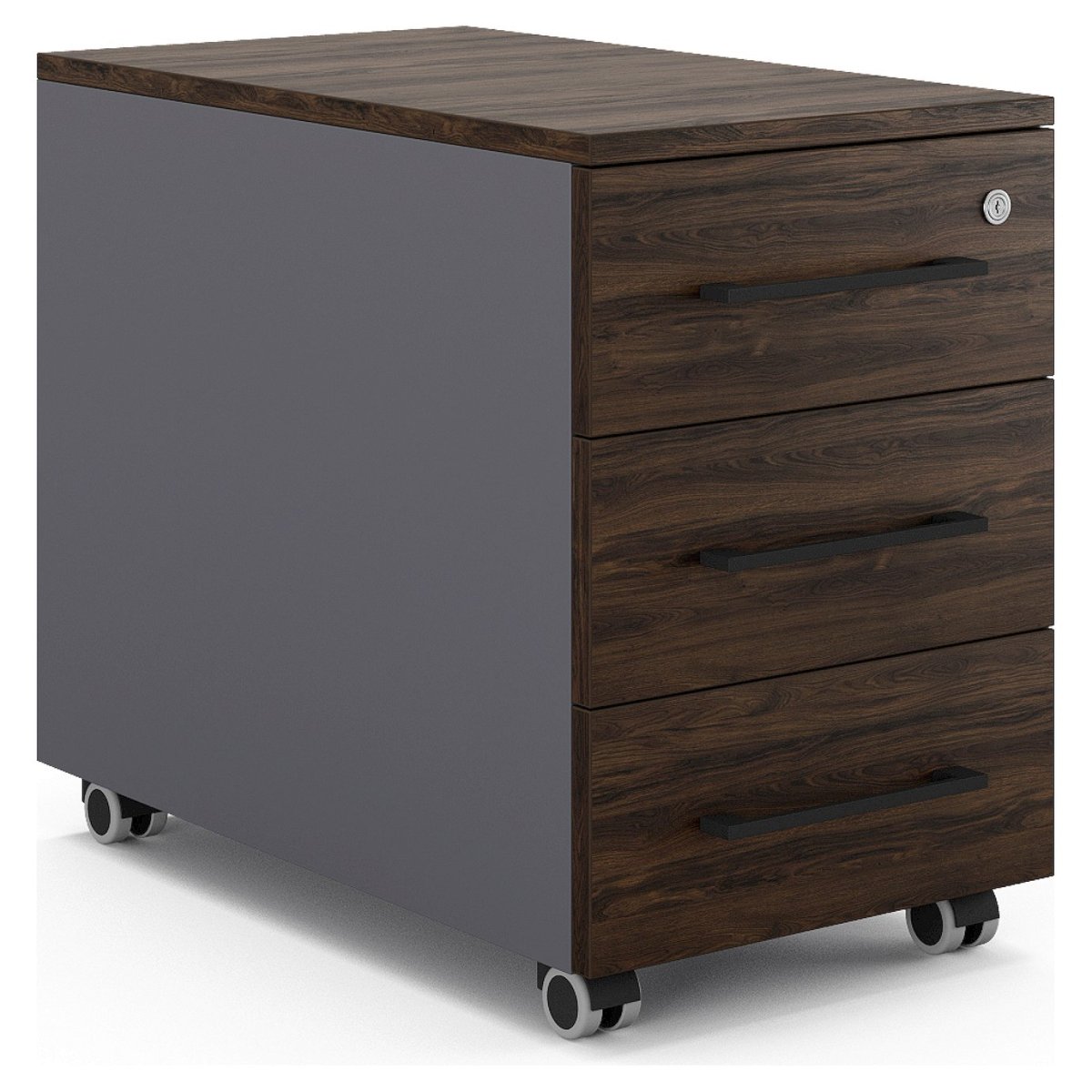 Тумба мобильная Kobor TM3-40/50 graphite/charlston с 3-мя выдвижными ящиками подойдет для офисных помещений, учебных заведений и дома. Приобретая офисную тумбу на колесах от компании Kobor, вы добавляете в свой интерьер не только практичный элемент, но и стильный акцент, который станет отражением вашего индивидуального вкуса.