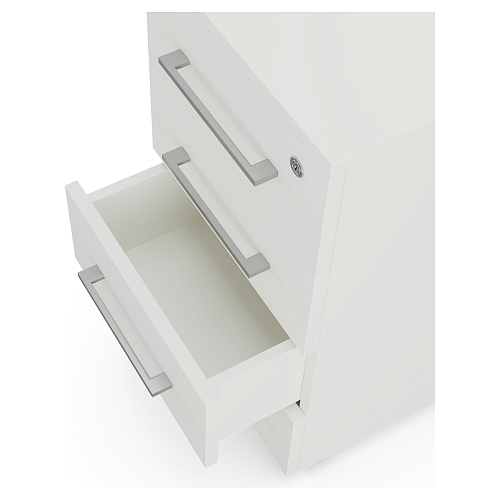 - В комплект приставной офисной тумбы от компании Kobor входят доводчики, обеспечивающие плавное и бесшумное закрытие ящиков и дверей.