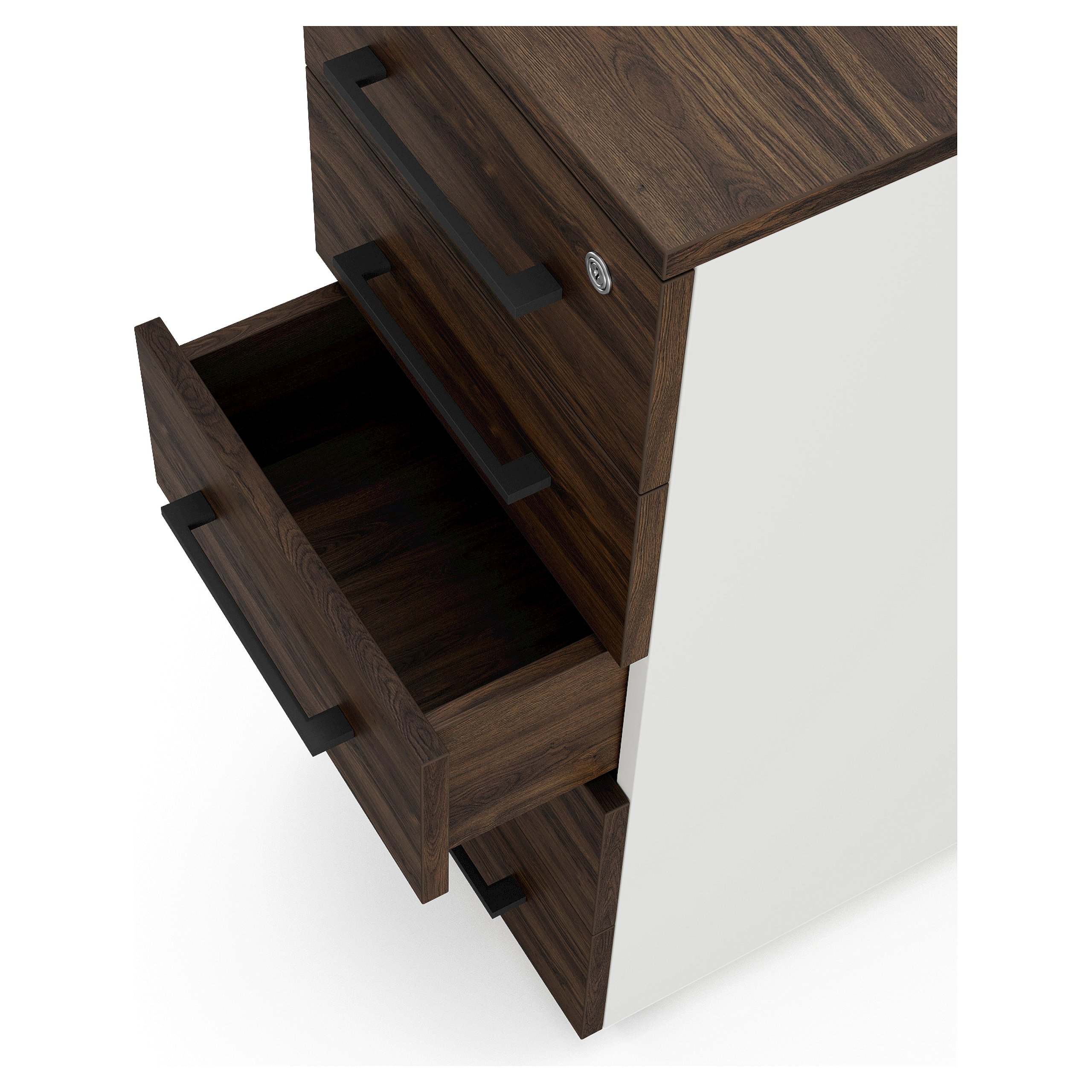 - В комплект приставной офисной тумбы от компании Kobor входят доводчики, обеспечивающие плавное и бесшумное закрытие ящиков и дверей.
