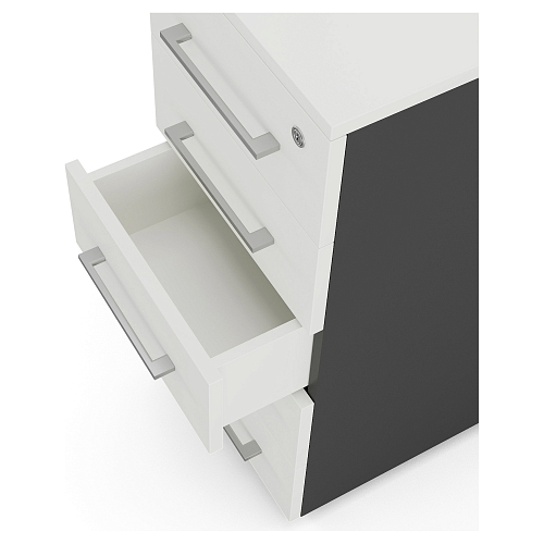- В комплект приставной офисной тумбы от компании Kobor входят доводчики, обеспечивающие плавное и бесшумное закрытие ящиков и дверей.