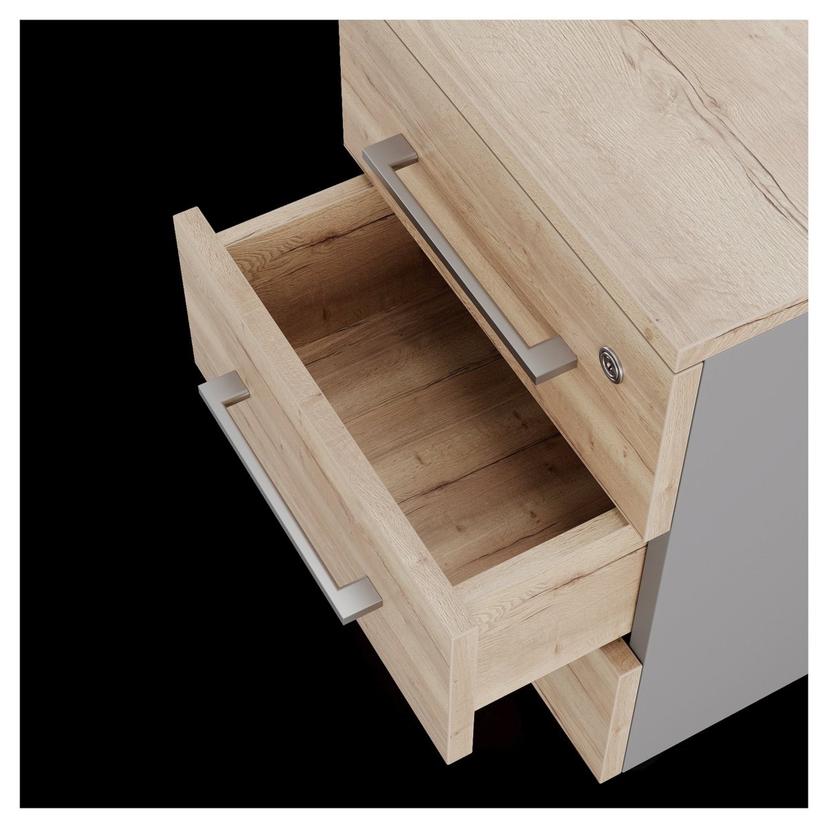 Тумба приставная KOBOR отличается высоким качеством и функциональностью. Ее корпус и ящики изготовлены из прочной ламинированной ДСП австрийской фирмы Egger, что гарантирует долговечность и надежность изделия. Задняя стенка тумбы выполнена из окрашенного металла с элегантной текстурой муар, придающей ей стильный и современный вид. Ее можно расположить под рабочим столом, либо рядом.