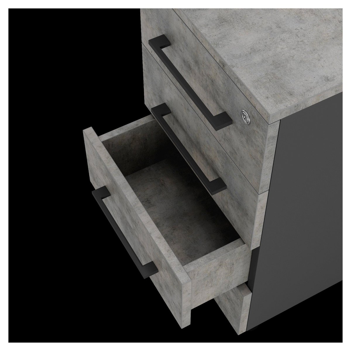 Тумба приставная KOBOR отличается высоким качеством и функциональностью. Ее корпус и ящики изготовлены из прочной ламинированной ДСП австрийской фирмы Egger, что гарантирует долговечность и надежность изделия. Задняя стенка тумбы выполнена из окрашенного металла с элегантной текстурой муар, придающей ей стильный и современный вид. Ее можно расположить под рабочим столом, либо рядом.