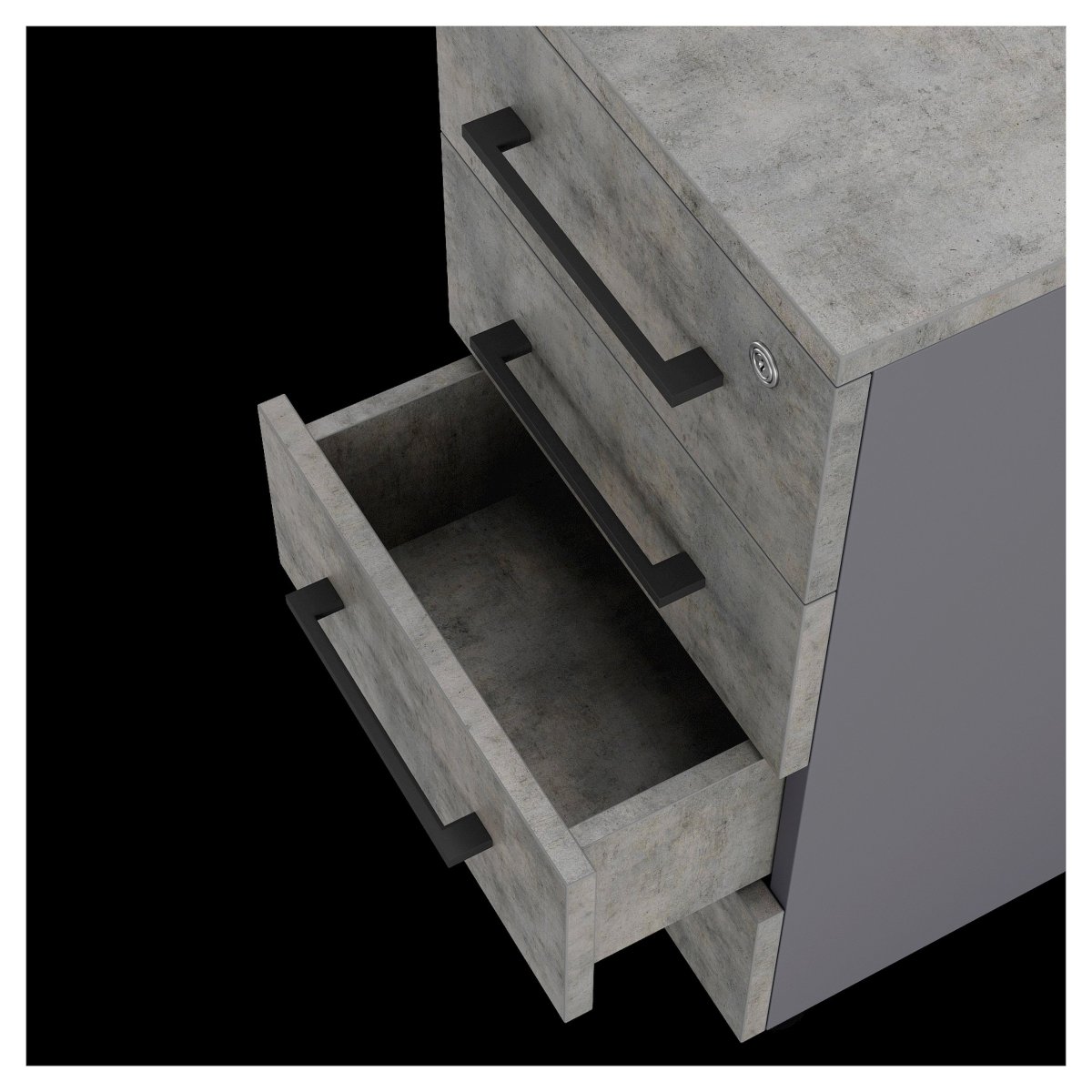 Тумба приставная KOBOR отличается высоким качеством и функциональностью. Ее корпус и ящики изготовлены из прочной ламинированной ДСП австрийской фирмы Egger, что гарантирует долговечность и надежность изделия. Задняя стенка тумбы выполнена из окрашенного металла с элегантной текстурой муар, придающей ей стильный и современный вид. Ее можно расположить под рабочим столом, либо рядом.