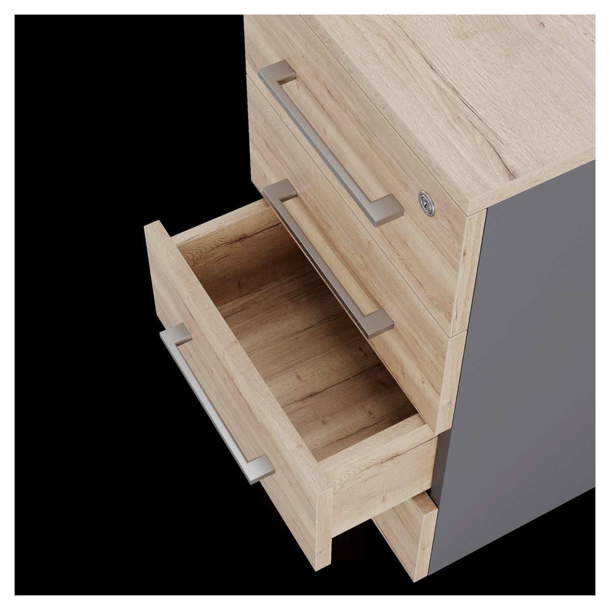 Тумба приставная Kobor TS4-40/70 graphite/natural с 4-мя выдвижными ящиками подойдет для офисных помещений, учебных заведений и дома. Приобретая приставную офисную тумбу от компании Kobor, вы добавляете в свой интерьер не только практичный элемент, но и стильный акцент, который станет отражением вашего индивидуального вкуса.