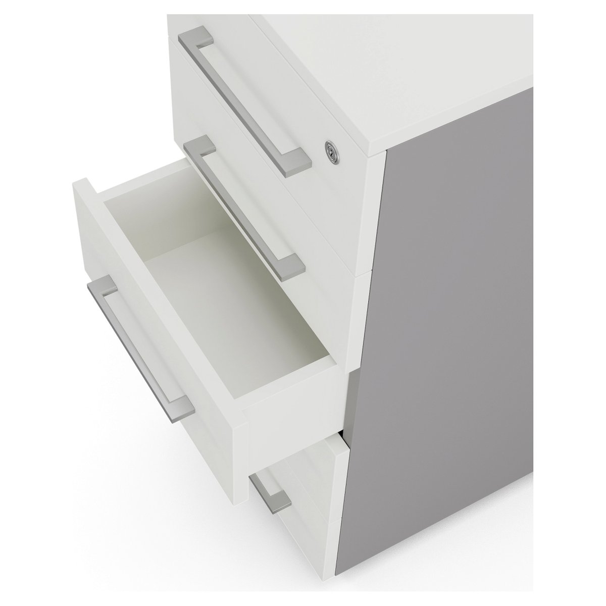 В комплект приставной офисной тумбы от компании Kobor входят доводчики, обеспечивающие плавное и бесшумное закрытие ящиков и дверей.
