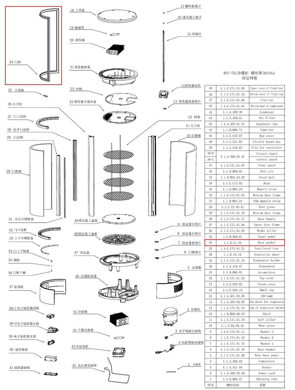 Уплотнение двери 1.1.E.E1.34 (#24) для витрины холодильной т.м. EQTA серии CS