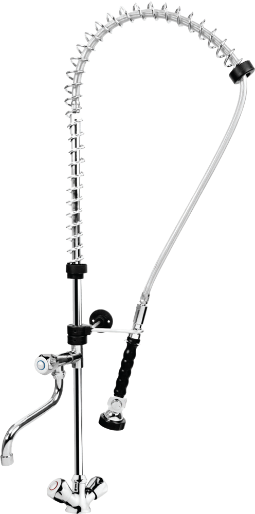 Устройство душирующее Liva MT02 Premium, арт. 105.021.004-1033 с промежуточным краном для предварительного ополаскивания MT02- имеет гибкий шланг, вращающийся в разных направлениях и крепящийся к моечной ванне и к стене.