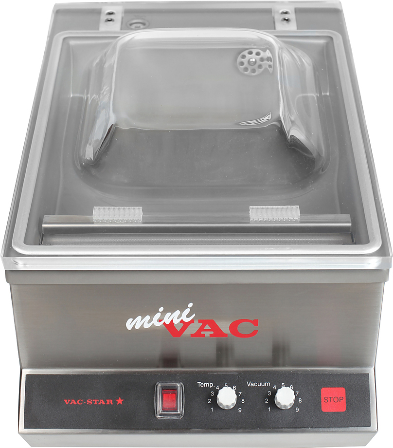 Вакуумный упаковщик VAC-STAR MiniVac используется на предприятиях общественного питания для упаковки продуктов питания, приготовленных по технологии Sous Vide в вакуумные пакеты. Такой метод упаковки позволяет длительное время сохранять свежесть продуктов. Корпус и камера полностью изготовлены из высококачественной нержавеющей стали, куполообразная крышка - из прозрачного акрилового пластика.