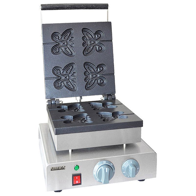 Вафельница AIRHOT WBBF-4 BUTTERFLY предназначена для выпекания вафель в форме бабочек, используется в ресторанах, кофейнях, кафе-мороженых, точках уличного фаст-фуда. Каждая вафля может быть наполнена начинкой. Модель оснащена терморегулятором и электронным таймером.